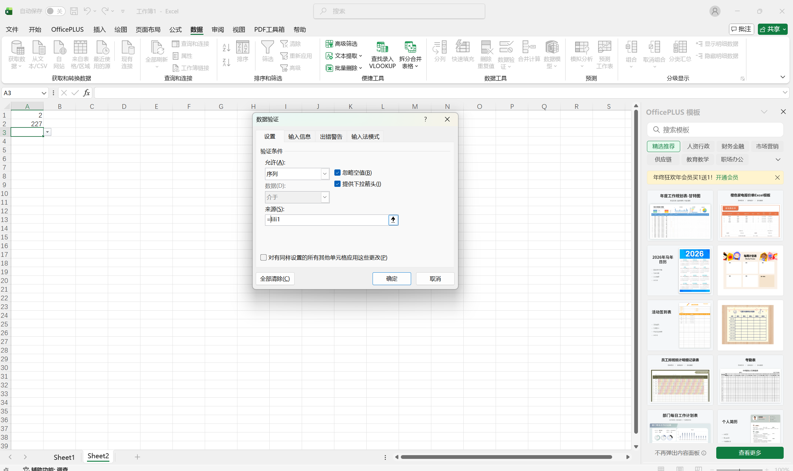 - 少量选项(≤255):直接通过数据验证设置下拉列表;