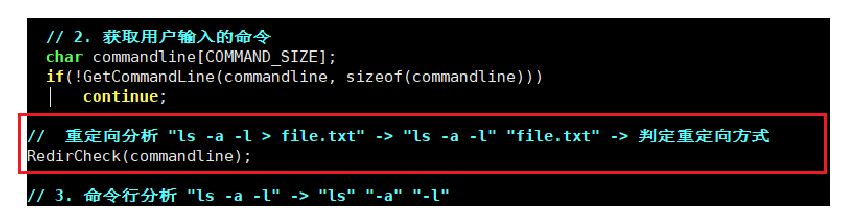 需要在输入命令后 命令行分析之前判断一下输入的指令是不是重定向