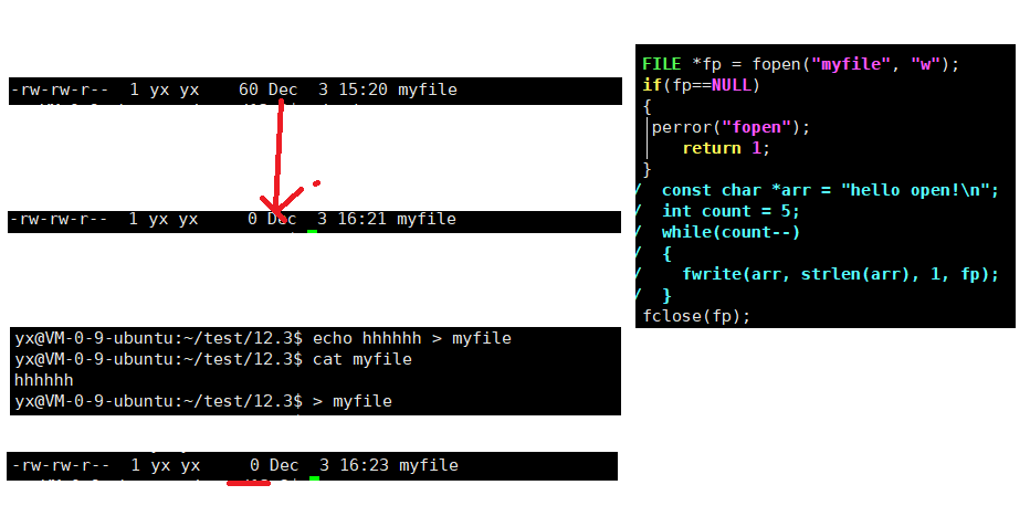 上面知道 以w方式打开文件会默认清空里面所有的内容 ,所以重定向的> 会把文件内容清空的原理其实就是以w方式打开了该文件,这种打开的方式让该文件内容清空了。