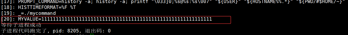 - 此时子进程的环境变量就在原来继承的父进程的环境变量的基础上新增了MYVALUE
