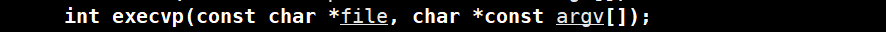 对于execvp函数中,函数名中有v,代表指令加选项加NULL需要以字符指针数组形式传参,并且函数名中有p代表我们不需要传入路径,直接传入命令(可执行程序名)即可