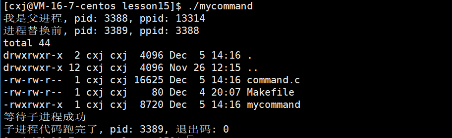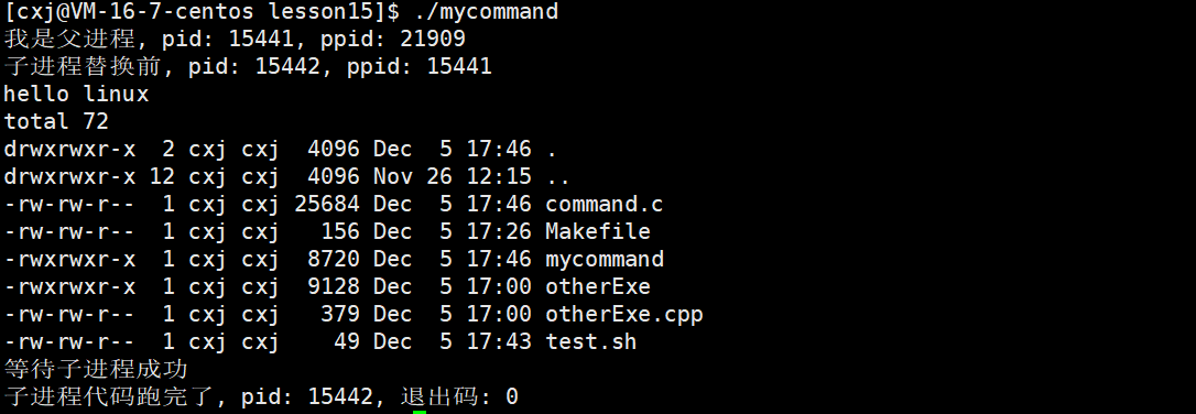 - 最终效果是父进程安全启动独立子进程完成 ls 命令的执行,和Linux终端执行命令的底层逻辑一致(终端作为父进程,启动子进程执行命令)。