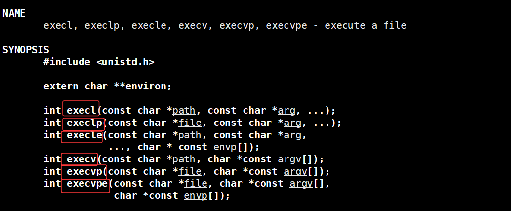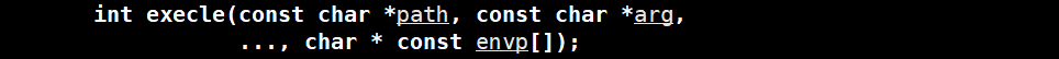 - 对于execvpe函数,其函数名中有v,代表我们需要将指令加选项加NULL以字符串指针数组的形式传参