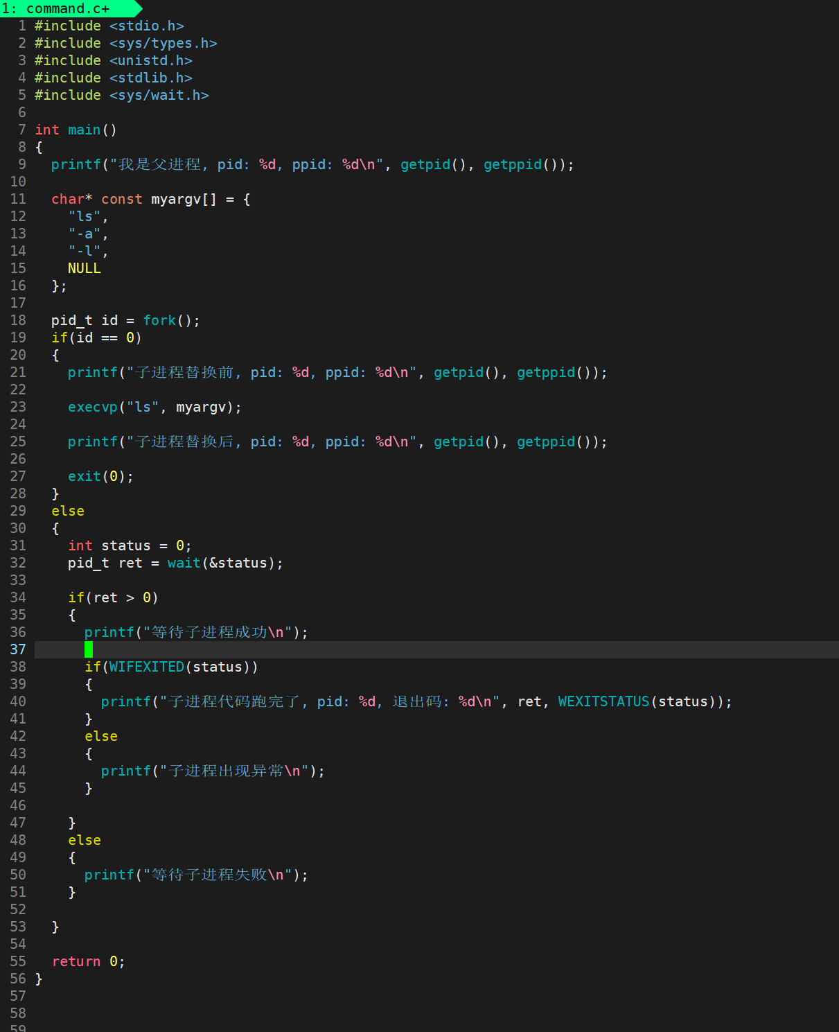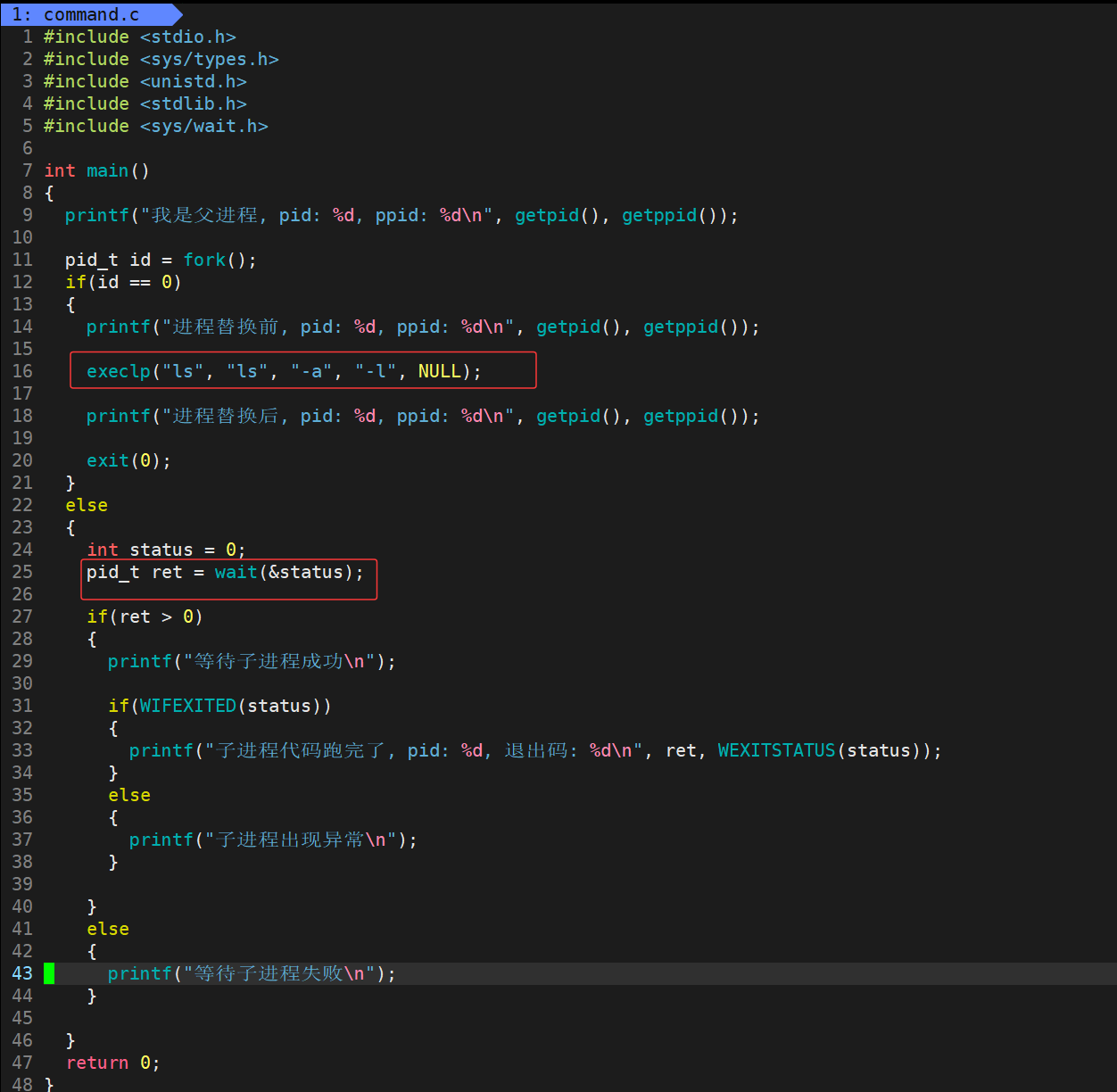 - 如上,我们就可以在我们的c语言程序中,fork创建子进程,对于这个子进程可以替换为c++程序执行