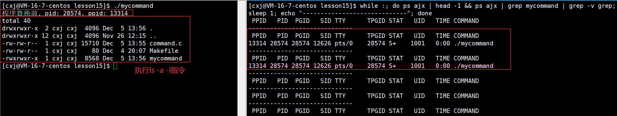 - 在这个运行过程中,观察右边脚本监视,显示我们的进程运行起来,创建了进程,休眠2秒后们进行execl程序替换,程序替换的过程中并没有新进程,那么我们可以得出进程替换过程中,并不会创建新进程