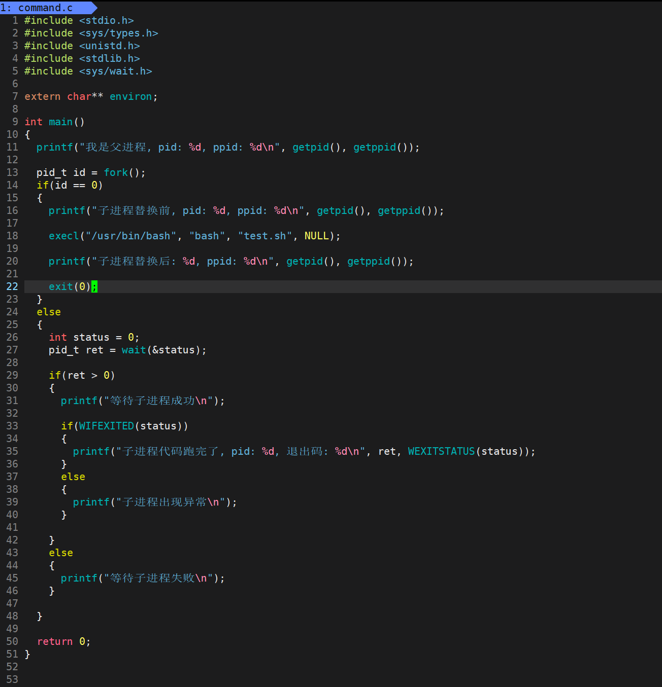 那么我们使用fork创建子进程的方式,让子进程进行程序替换,让子进程执行命令,而父进程则一直wait阻塞式等待子进程即可