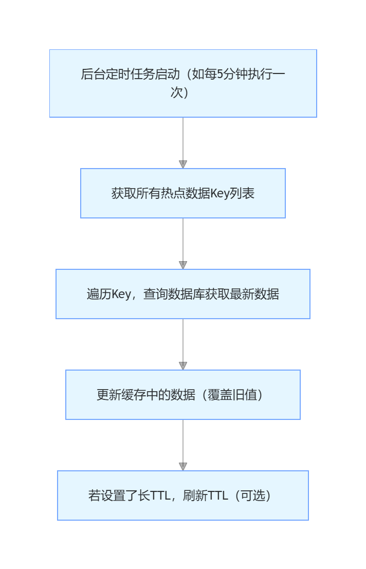 本质是 "用后台定时更新替代自动过期",既避免了热点 Key 过期后的穿透,又保证了数据一致性。
