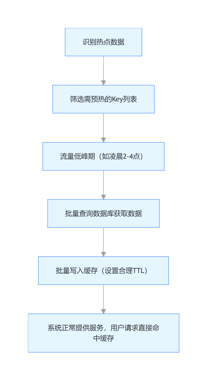 本质是 "提前填充缓存",让缓存在高流量到来前就处于 "饱和状态",最大化缓存命中率,减少数据库压力。