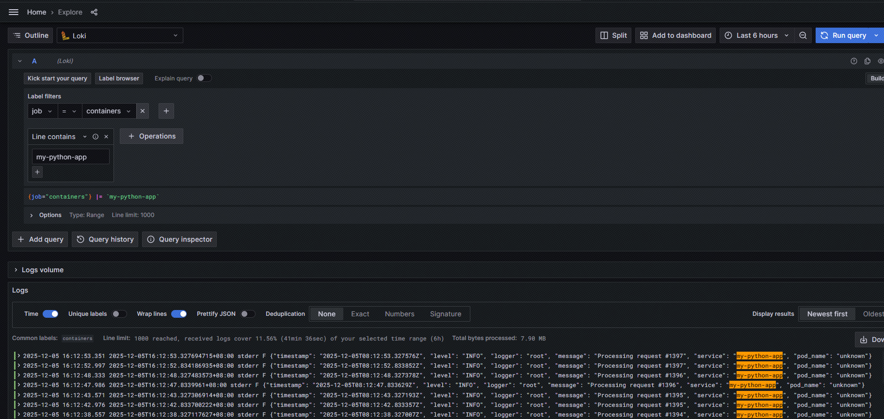 此篇博客,我将结合一个 Python 应用示例,详细讲解如何在 Kubernetes(K8s)集群中设计并部署一套完整的 应用容器日志收集系统。我们将采用业界主流、轻量高效的 PLG 架构(Promtail + Loki + Grafana),适用于大多数中小型到中大型云原生场景。