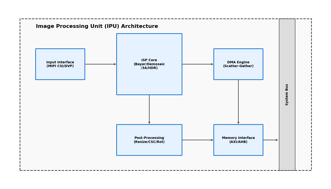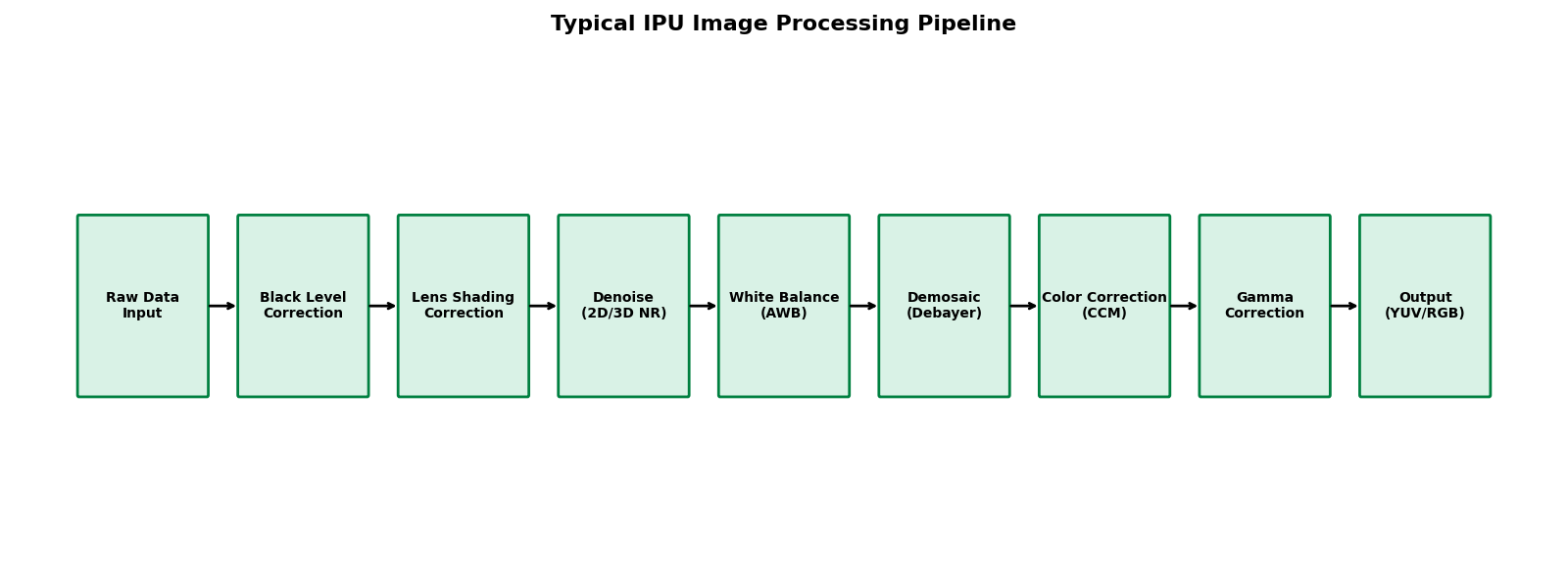 IPU 的处理流程通常是线性的,数据流依次经过各个硬件模块。