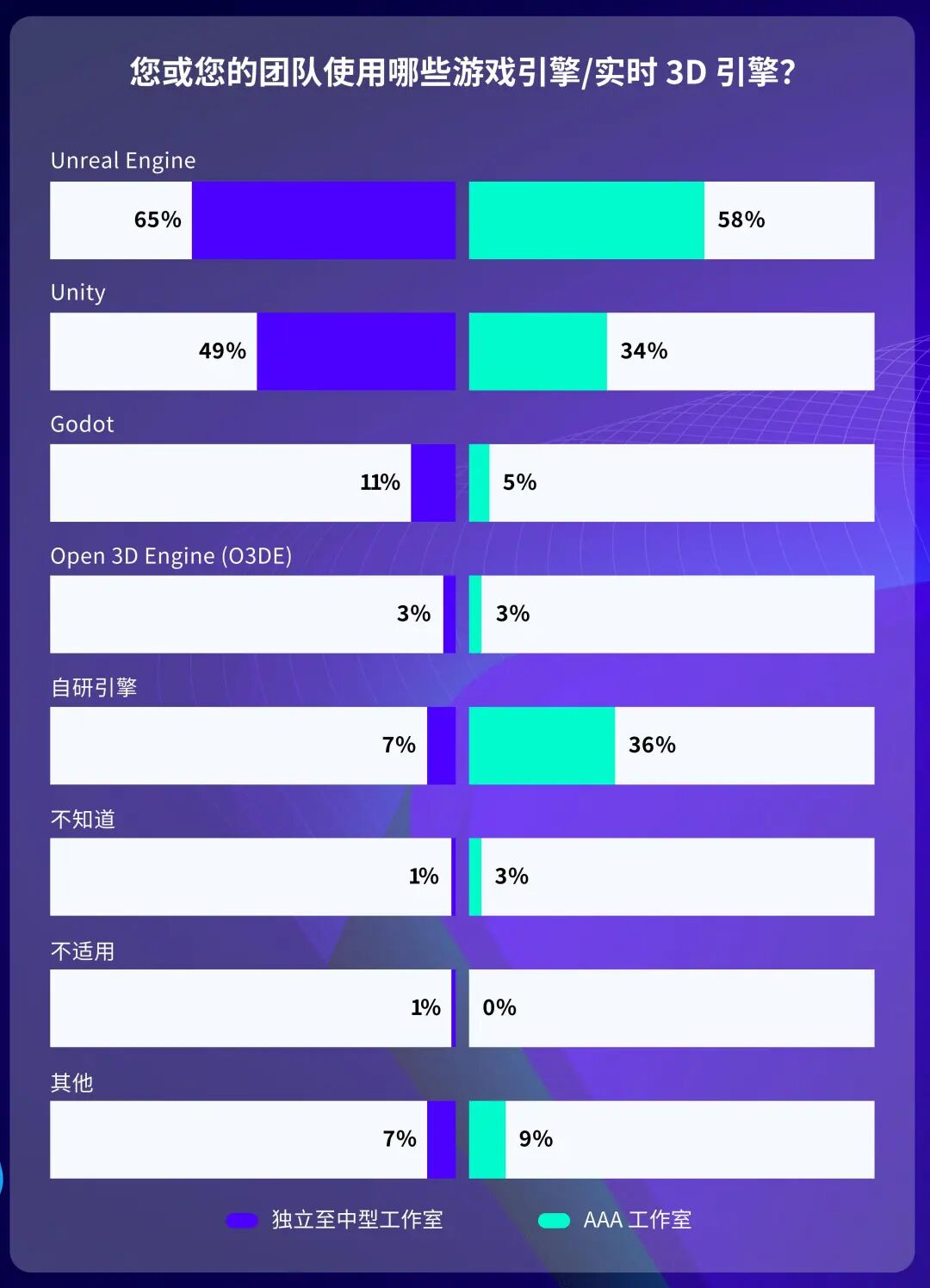 一家使用自研引擎的成熟游戏工作室在调查中坦言:"如今启动一个新的专有引擎项目是非常艰难的。"他们指出,一些主流引擎提供商对客户群体造成了干扰或负面影响,并补充道:"自研引擎可以避免这些问题,但开发成本很高。"