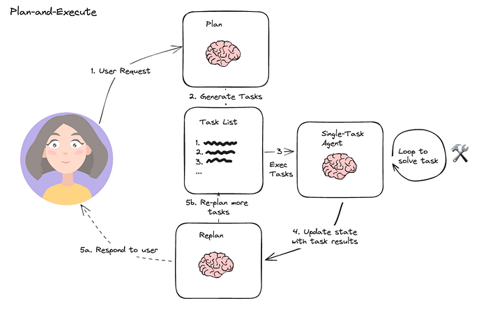 在这种架构中,首先,智能体根据给定的任务顺序生成子任务。然后,单任务(专业化)智能体解决这些子任务,如果任务完成,则将结果发送回规划智能体。规划智能体根据结果制定不同的计划。如果任务完成,规划智能体会向用户发出响应。