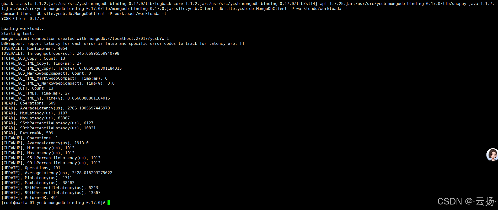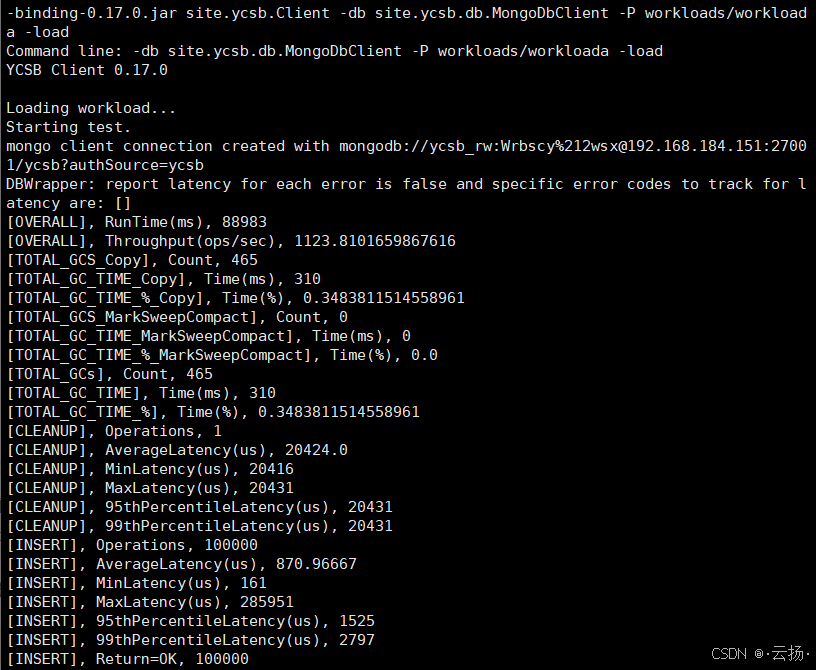bashtar zxvf ycsb-mongodb-binding-0.17.0.tar.gz cd ycsb-mongodb-binding-0.17.0/ # 后续压测操作均在此目录执行
