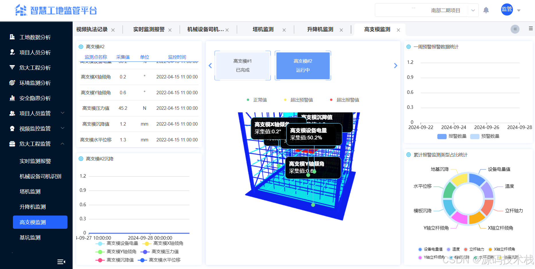 结构安全监测:立杆倾角、荷载、位移、沉降