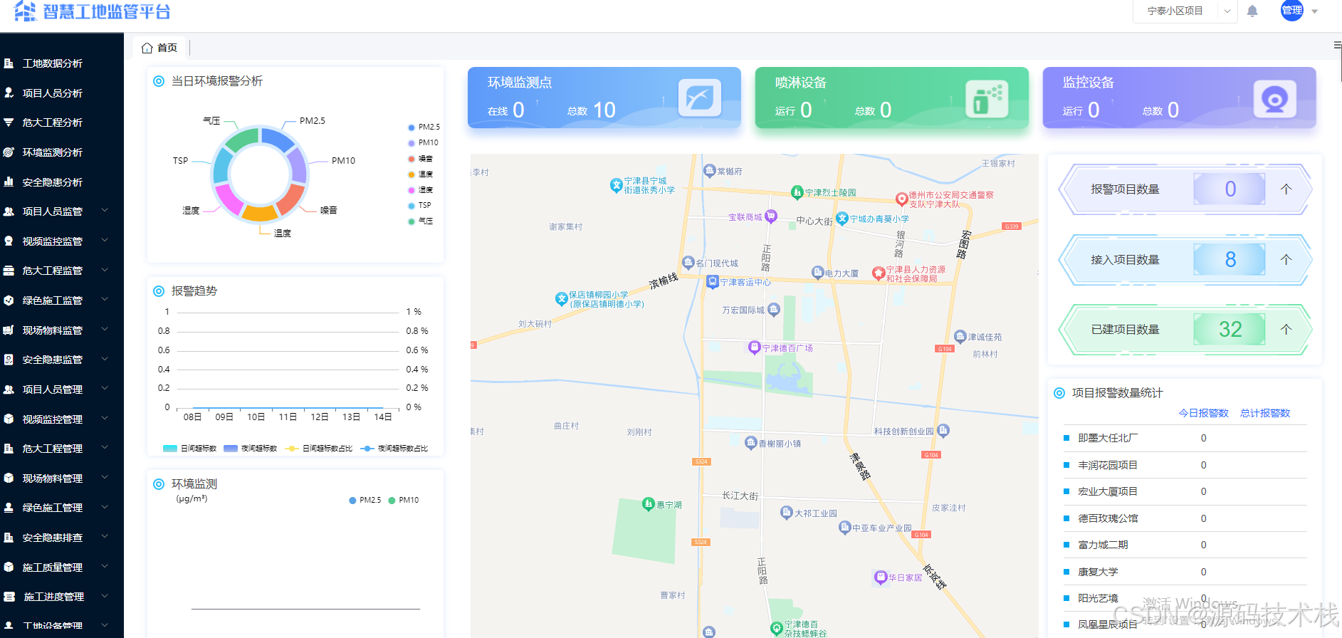 实时参数监测:PM2.5、PM10、温湿度、风速、噪声