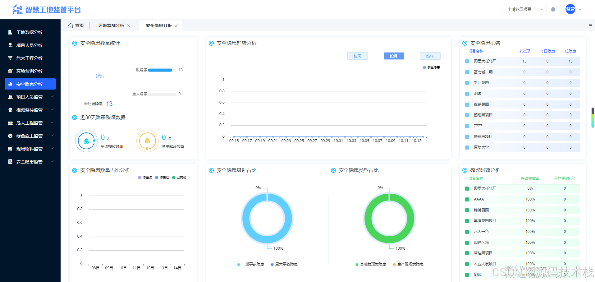 智慧工地平台支持项目级、公司级、集团级多级权限划分,可根据企业的组织架构进行项目权限、功能权限、数据权限设定。