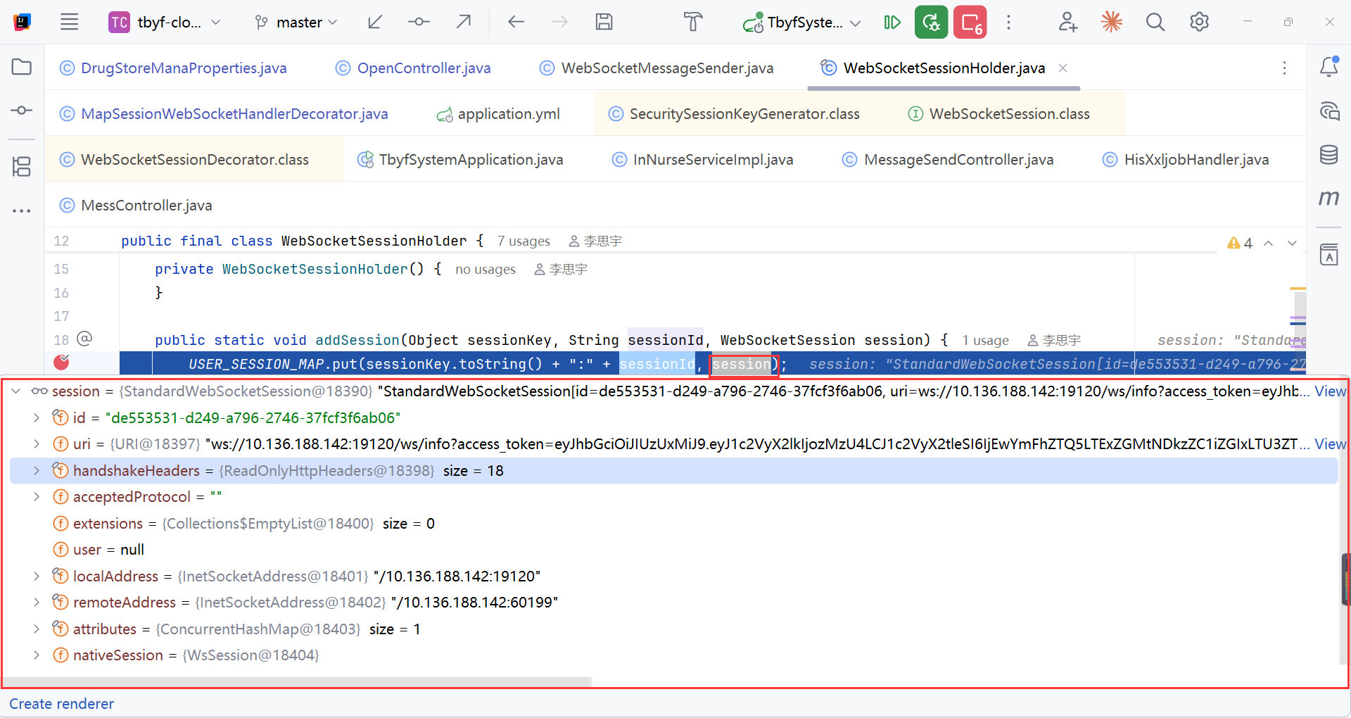 WebSocketSessionHolder.addSession(sessionKey, session.getId(), session);