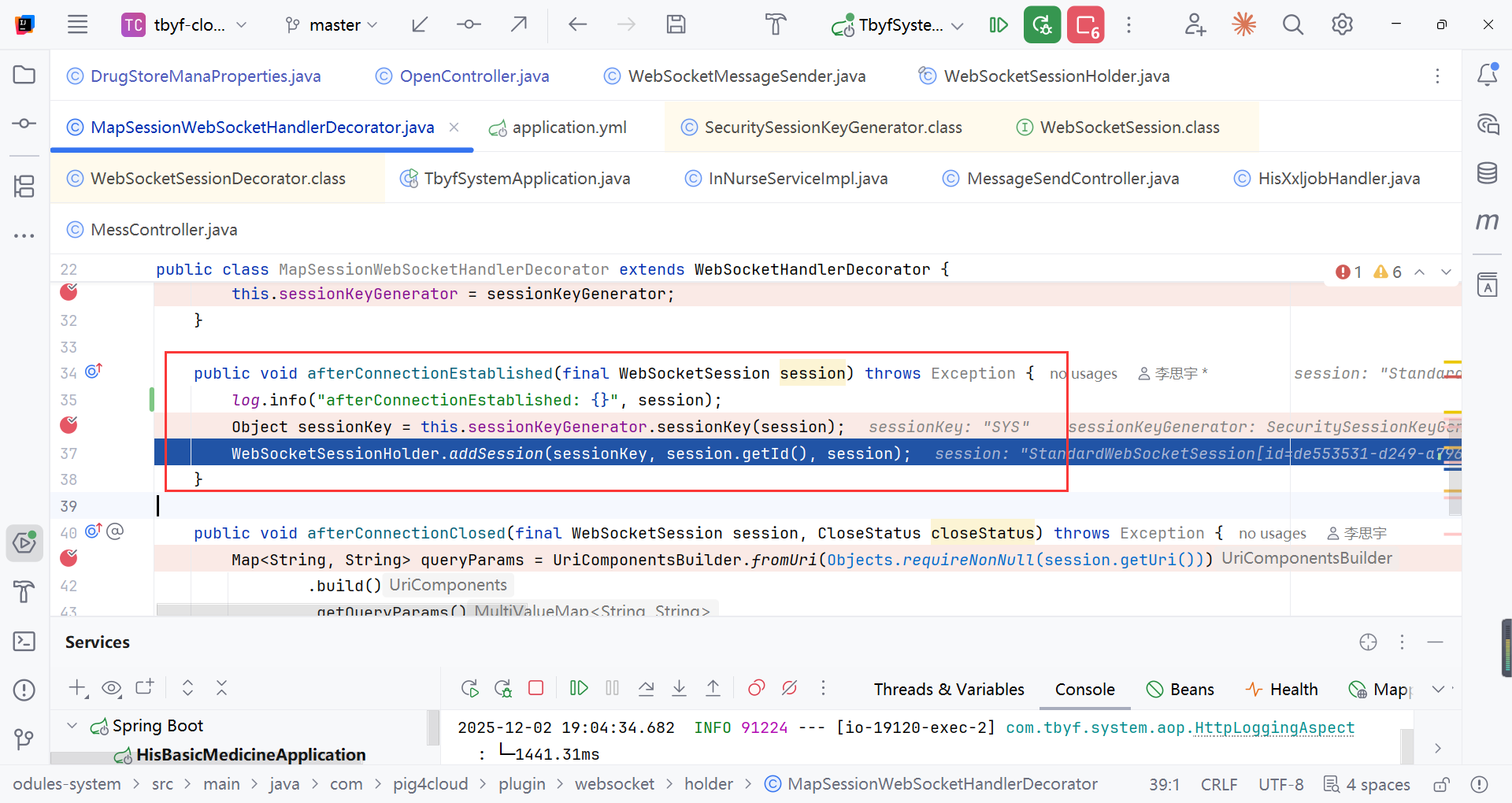 1.3.添加建立session会话连接到会话管理及监听下线MapSessionWebSocketHandlerDecorator