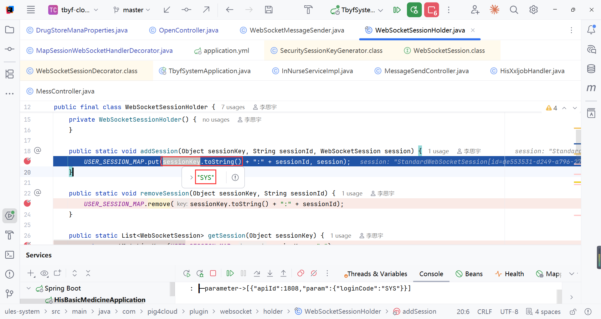 USER_SESSION_MAP.put(sessionKey.toString() + ":" + sessionId, session);