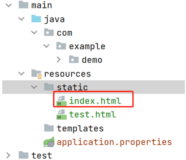 index.html)放在 Spring Boot 默认的静态资源目录resources/static下。 - 控制器类使用