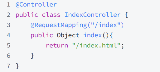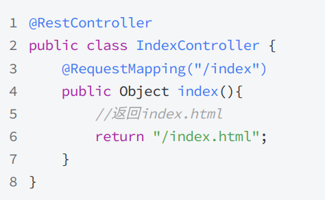 @Controller注解,接口方法返回静态页面的路径(如"/index.html")。 - 视图解析器会自动识别路径,找到