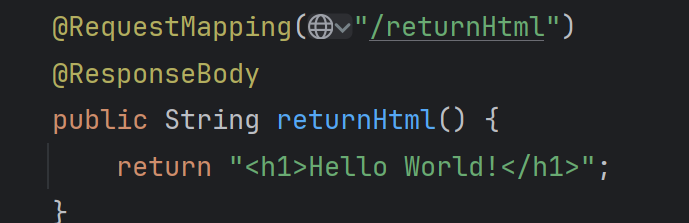 @ResponseBody返回包含 HTML 标签的字符串,浏览器会自动解析该字符串为 HTML 元素。 - 示例效果 :方法返回