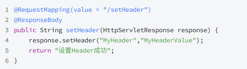 response.setHeader("MyHeader", "MyHeaderValue"),即可在响应中添加名为MyHeader、值为MyHeaderValue的自定义 Header。 - 若 Header 名称已存在,