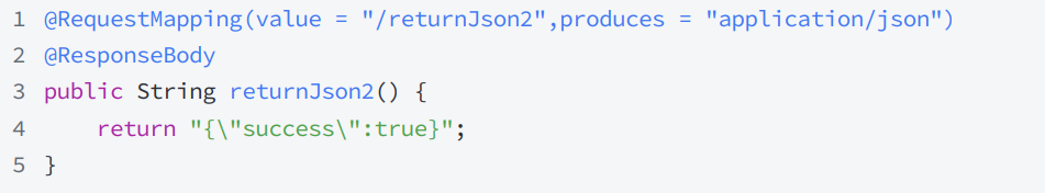 produces,Spring MVC 会根据返回内容自动匹配Content-Type(如返回字符串时默认是text/html)。