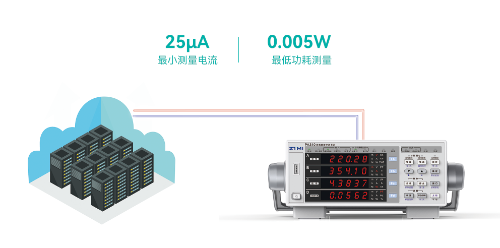 - 对微小电流的捕捉能力: 待机功耗是节能的关键。PA310的电流测量下限可达25μA,能准确测量服务器在"睡眠"状态下的真实功耗。