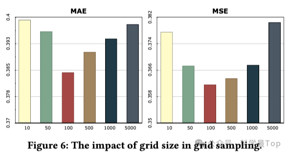 网格采样与混合技术的优化效果。下图展示了网格大小对模型性能的影响,揭示了网格划分的关键平衡点。当网格尺寸设定为100×100时达到最佳效果,既避免了网格过大导致的模式混杂问题(如单一网格情况退化为朴素采样),又防止了网格过小导致的样本稀疏问题。这一发现为时间序列数据采样提供了重要的超参数设置指导。