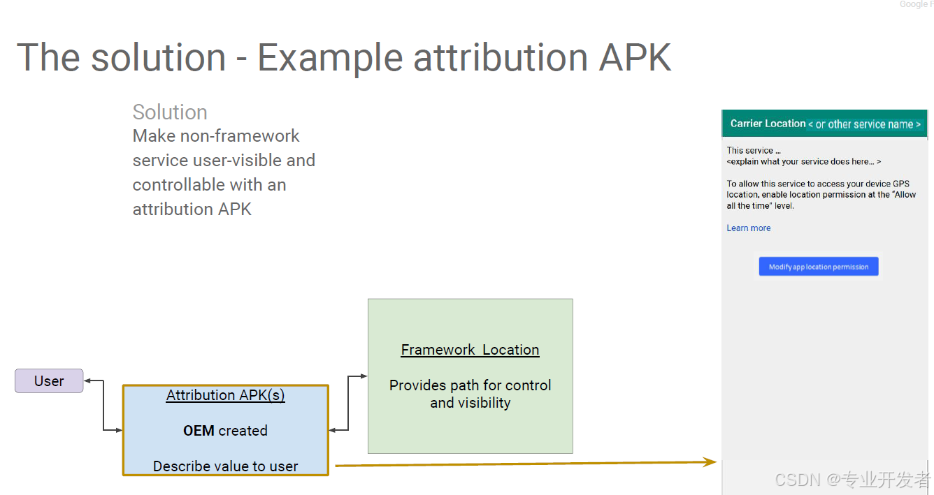如通过通过attribution APK,让非框架类服务对用户可见且可控制