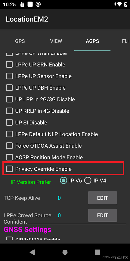 - 实验室测试时,勾选该复选框,即可在 AGPS 配置中设置值为 7。