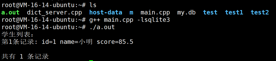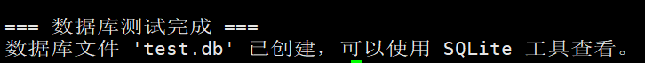 std::cout << "数据库文件 'test.db' 已创建,可以使用 SQLite 工具查看。" << std::endl;