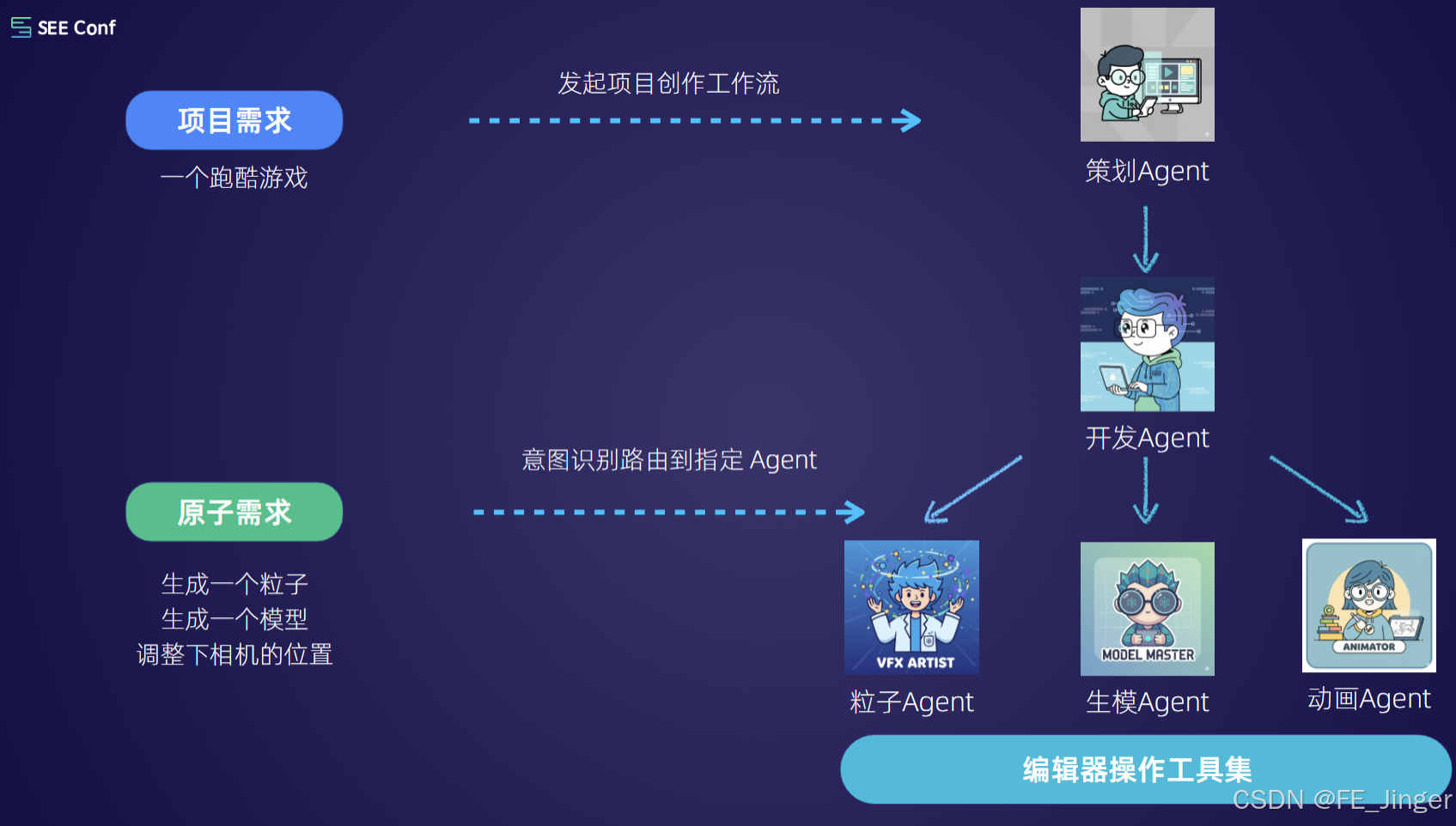 - 开发Agent:自动完成编辑器操作、物理引擎配置等技术工作。