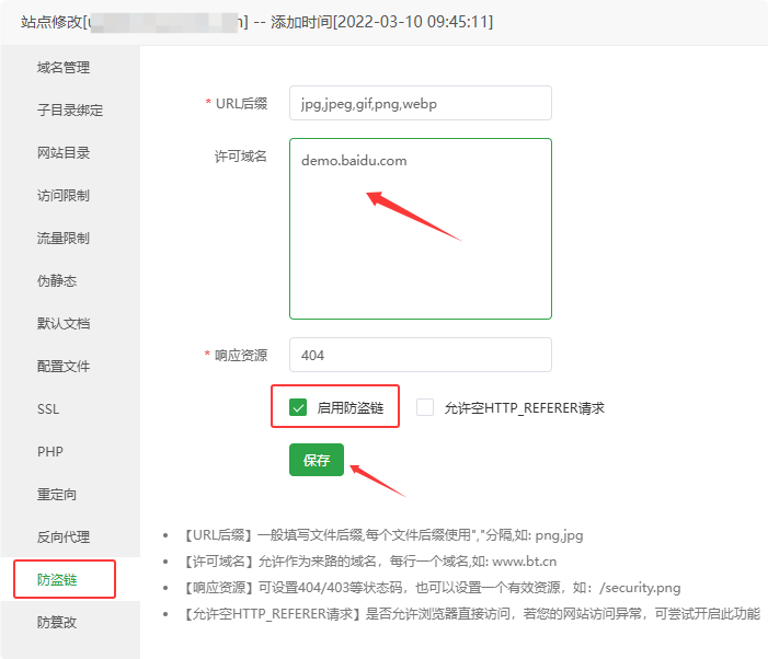 也可以不用该规则,直接进行404防盗链,在许可域名里加入允许使用资源图片的域名。
