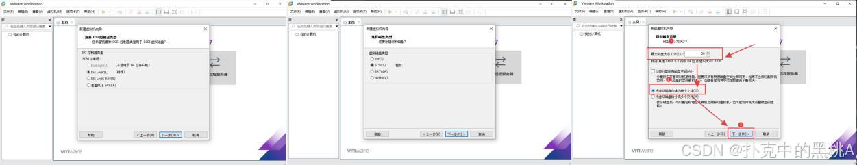 这一步给该虚拟机自定义一个名称,然后自己选一个位置,不建议选C盘,配置处理器:处理器 1个×2 核(共 2 核)就足够了,内存 2GB,默认网络连接,I/O 控制器类型默认不变(选择推荐) ,磁盘类型默认不变(选择推荐)这里磁盘大小改成 50G ,并且选择"将虚拟磁盘存储为单个文件",