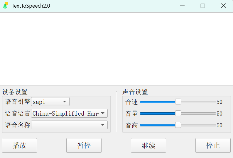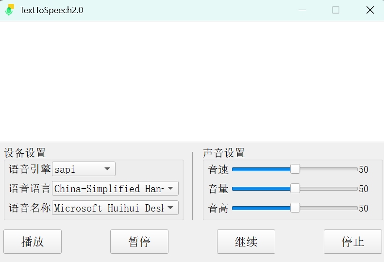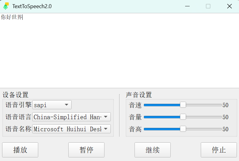 分别通过tts指针调用say,pause,resume,stop函数来对文本转语音后播放,暂停,继续,停止的控制。最后编写完效果如下: