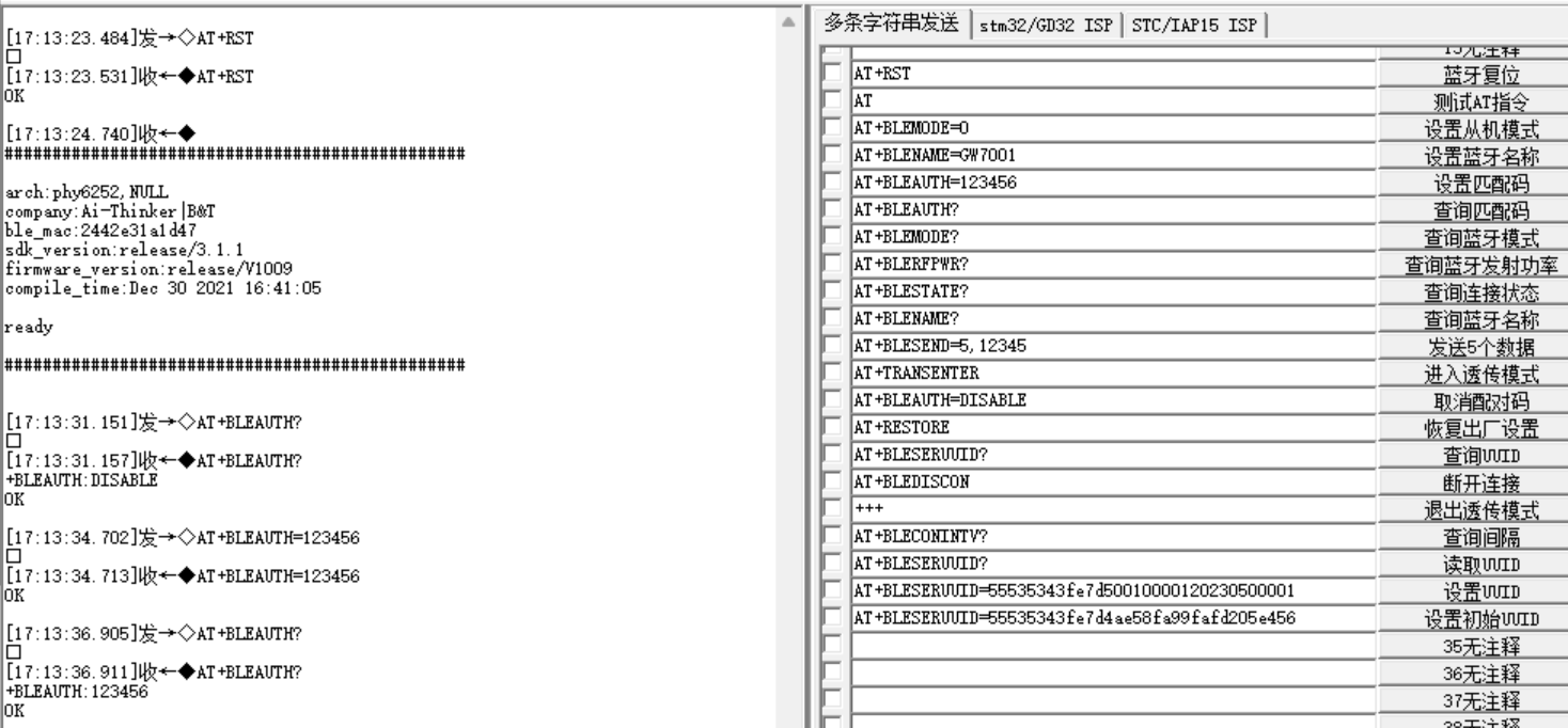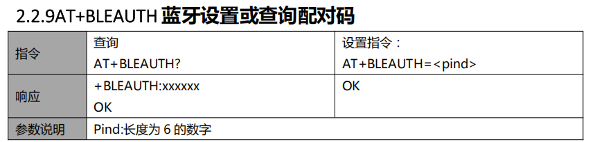 3、 AT+BLEAUTH 查询或设置蓝牙配对码