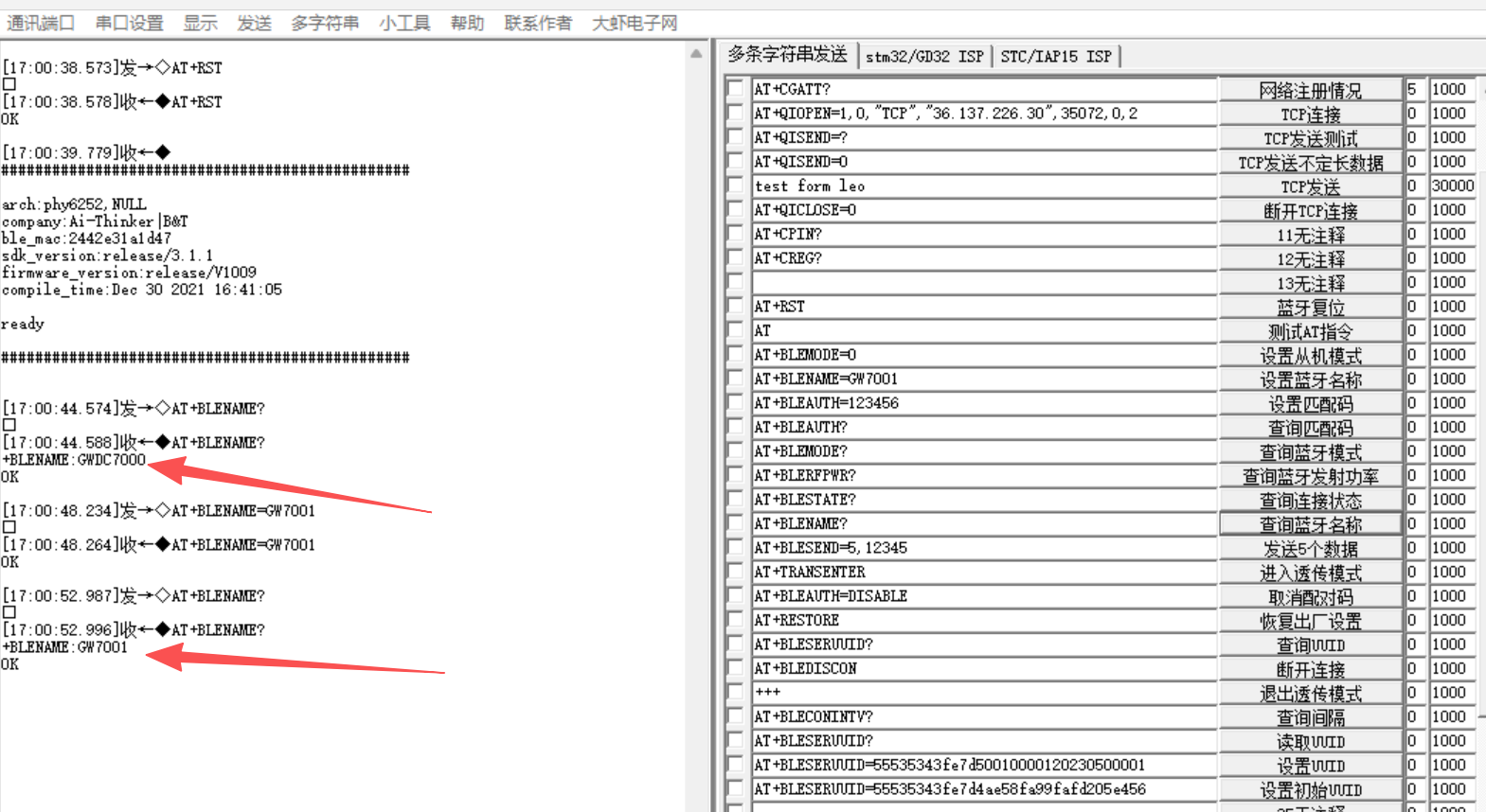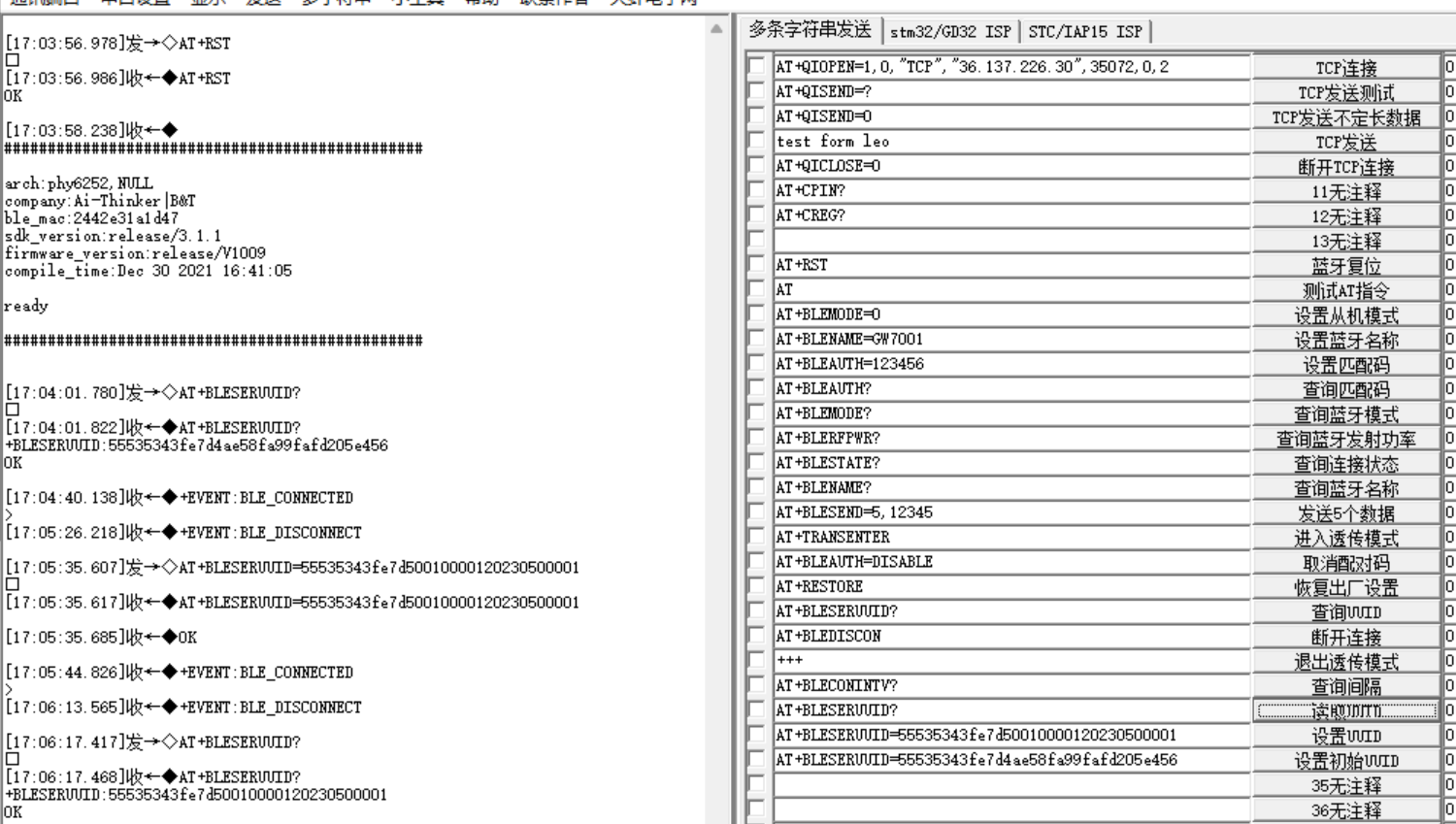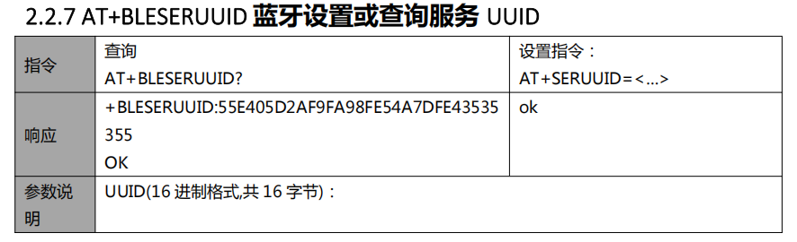 2、AT+BLESERUUID 查询或者设置服务 UUID