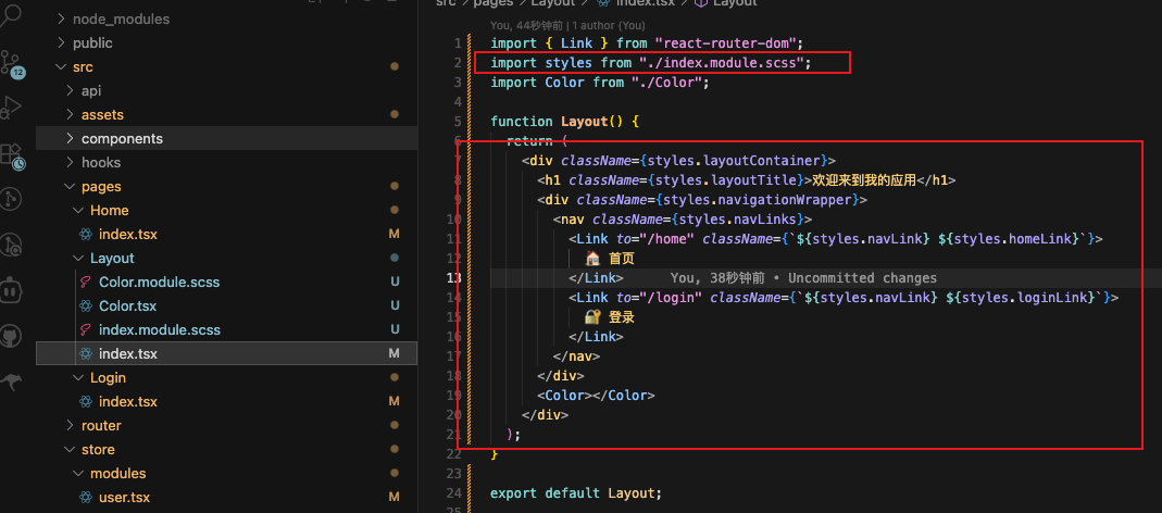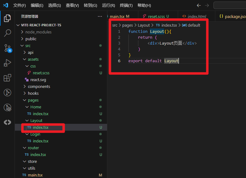 在pages页面下建立这三个文件夹(Home,Layout,Login ,记得是index.tsx文件)并写入最简单的代码