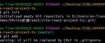 由于这里生成的项目没有git仓库,所以我们git init来生成一个仓库。然后git add . ,git commit- m"" 来进行初次提交。