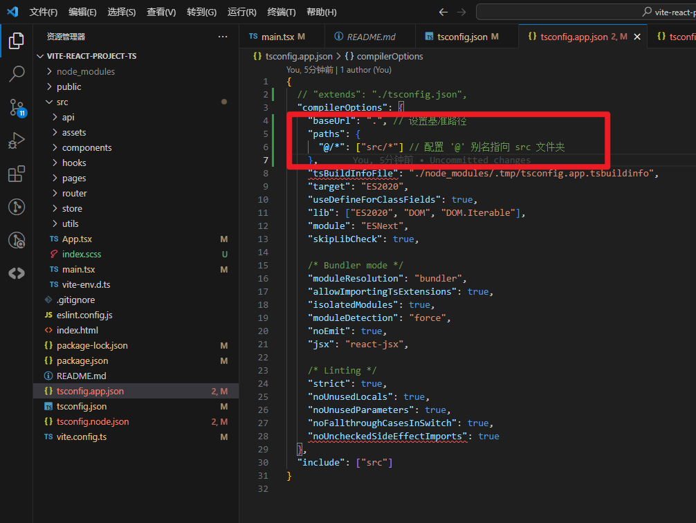 <font style="color:rgb(6, 6, 7);">tsconfig.app.json</font> 用于专门配置客户端应用代码。它扩展或覆盖了 <font style="color:rgb(6, 6, 7);">tsconfig.json</font> 中的设置,以满足应用代码的特定需求。例如,你可以在这里设置 <font style="color:rgb(6, 6, 7);">baseUrl</font> 和 <font style="color:rgb(6, 6, 7);">paths</font> 来定义路径别名