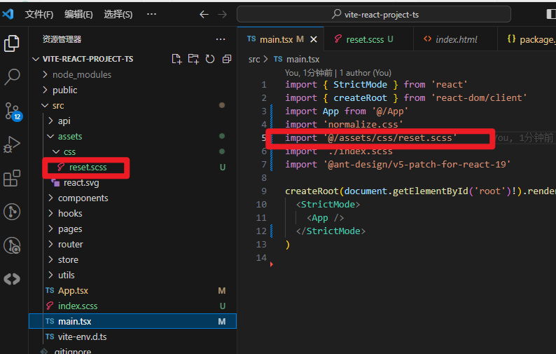 2.在main.ts中引入:import '@/assets/css/reset.scss'