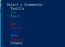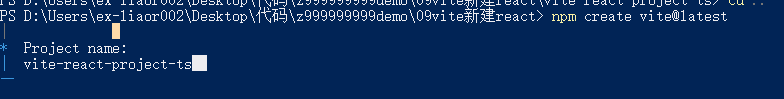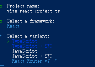 下面跟着选就行了,输入项目名,选择react+ts(ts是否要看大家自己的选择,建议还是选上,ts是趋势。小项目或者时间紧的话可以直接使用js也可以。)