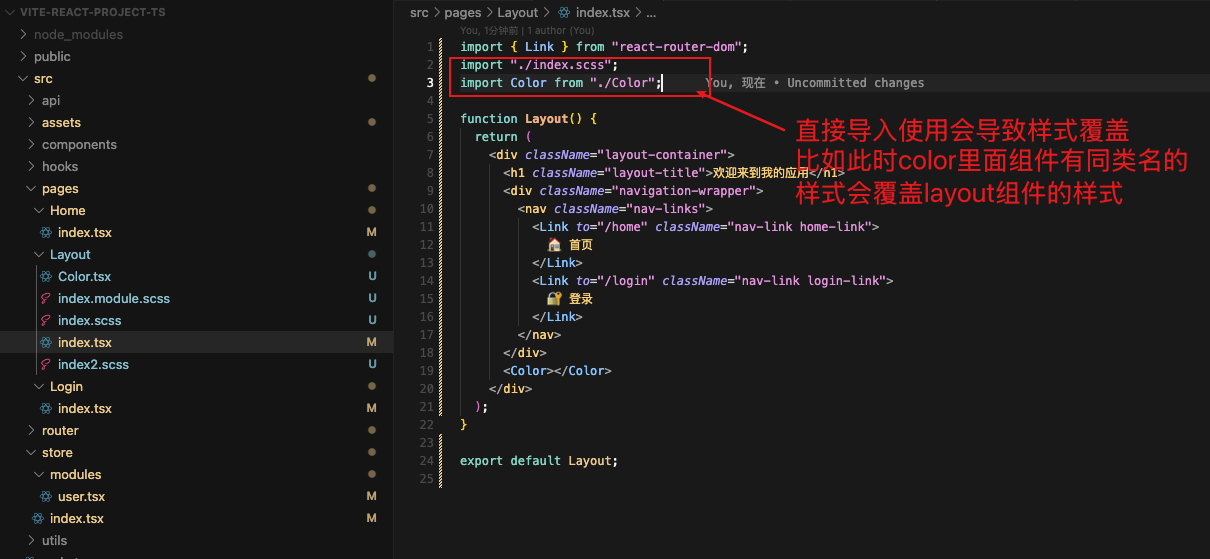 正确使用方式(改为css module方式,这样子父子组件类名相同也不会样式覆盖了):