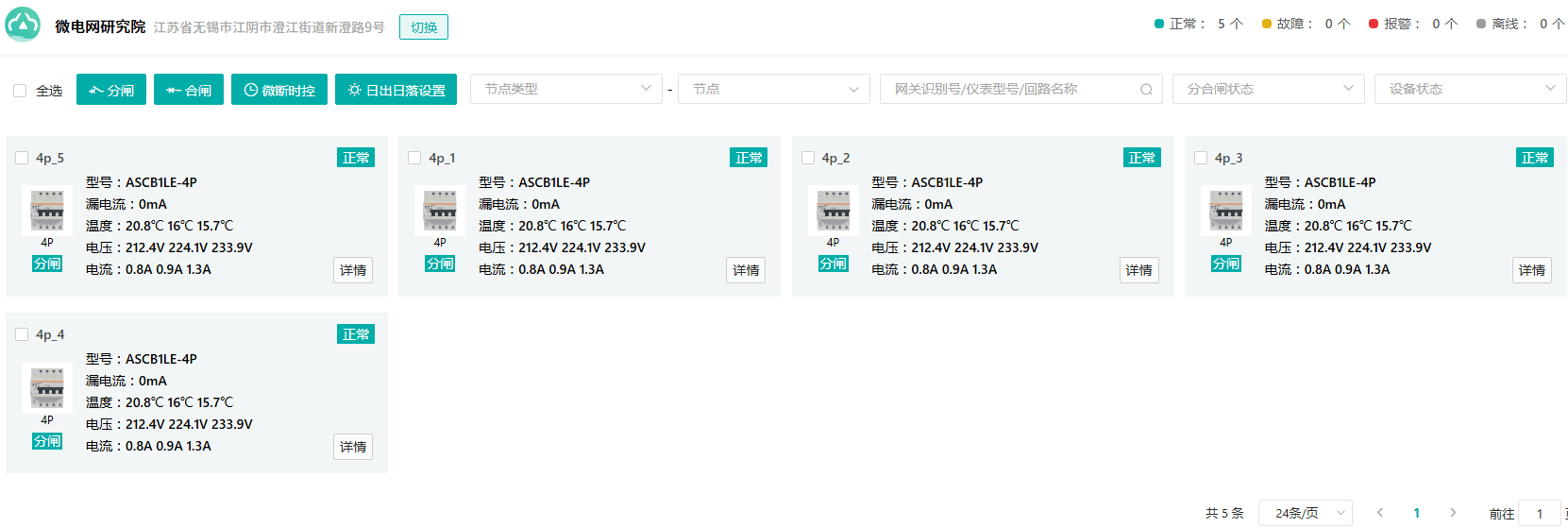 展示项目下断路器的状态信息和运行情况,可以批量对断路器进行分合闸操作。