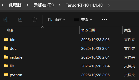 将该文件夹放到路径简单且不含中文或空格的目录中。示例: D:\TensorRT-10.14.1.48