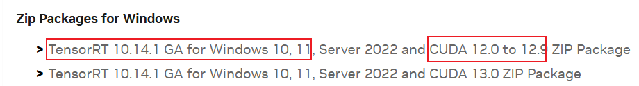 选择合适版本,这里我选择 TensorRT 10.14.1, 下载得到ZIP压缩包,解压得到 TensorRT-10.14.1.48 文件夹(2.78GB)。