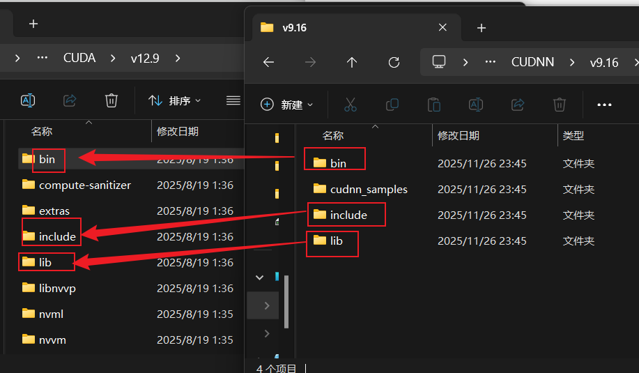 - CUDNN\v9.16\include\12.9 下的文件都复制到 CUDA\v12.9\include 下