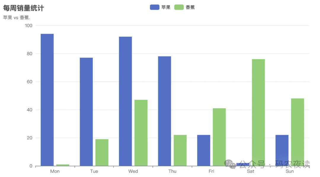 charts.WithTitleOpts(opts.Title{Title: "每周销量统计", Subtitle: "苹果 vs 香蕉."}),
